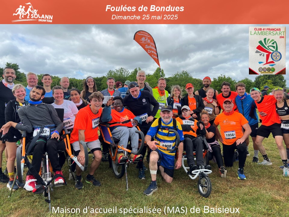 Depuis plusieurs années maintenant, l’association Solann Dream Team participe via le Club 41 de Lambersart aux 10 km des Foulées de BONDUES en accompagnant des résidents de la Maison d’Accueil Spécialisées de Baisieux (MAS) de l’association Les Papillons Blancs de Lille